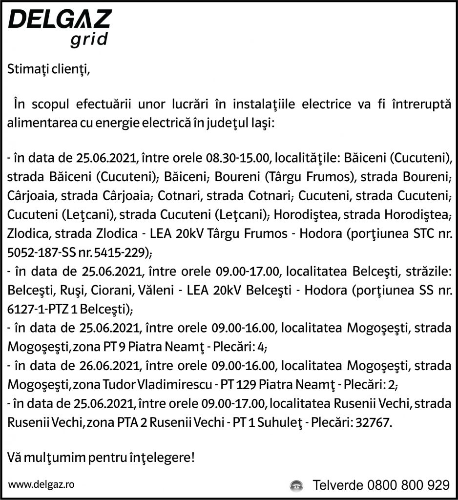Anunțuri Delgaz gridAnunț Delgaz Grid 23 iunie 2021 / 2 de RedacțiaJune 22, 2021June 22, 2021033 Share0