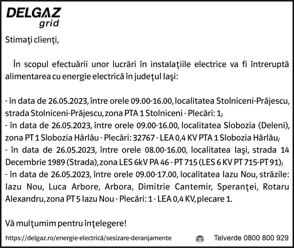 Anunț Delgaz Grid 23 mai 2023 / 1