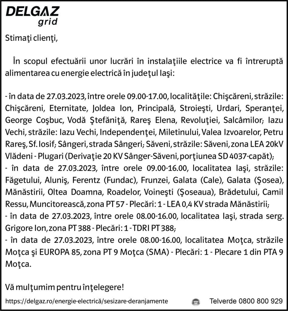 Anunțuri Delgaz gridAnunț Delgaz Grid 23 martie 2023 / 2 de RedacțiaMarch 22, 2023March 22, 2023032 Share0