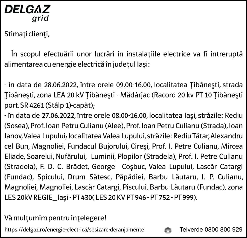 Anunțuri Delgaz gridAnunț Delgaz Grid 24 iunie 2022 / 1 de RedacțiaJune 23, 2022June 23, 2022047 Share0