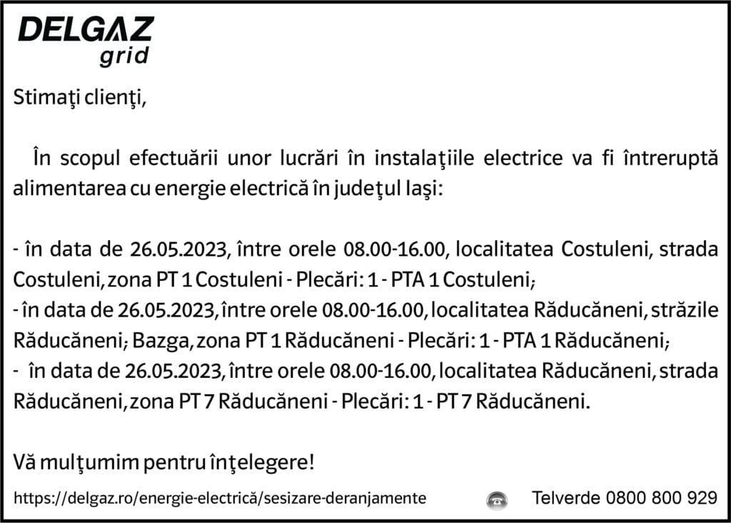 Anunț Delgaz Grid 24 mai 2023