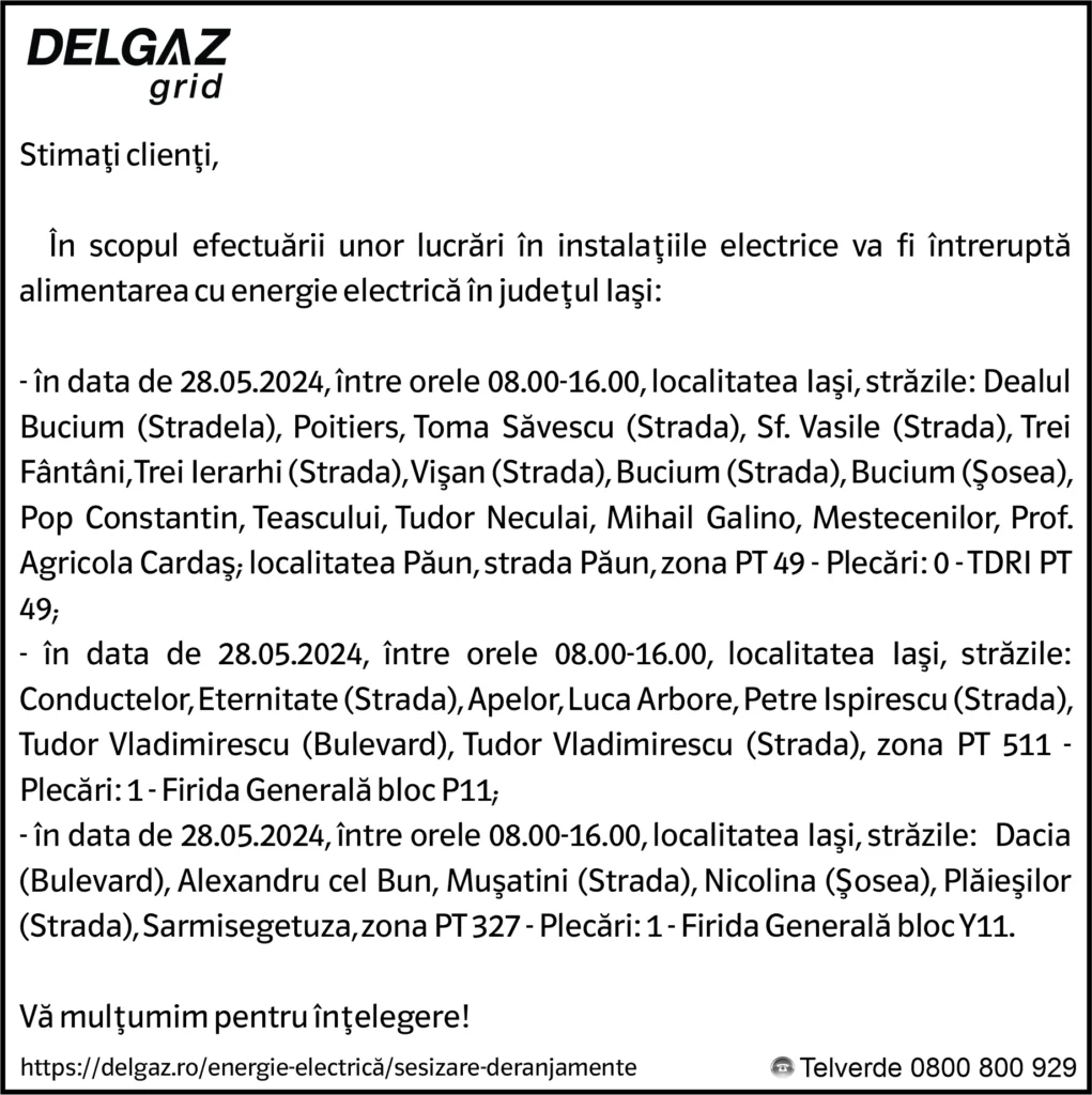Anunț Delgaz Grid 24 mai 2024 / 2