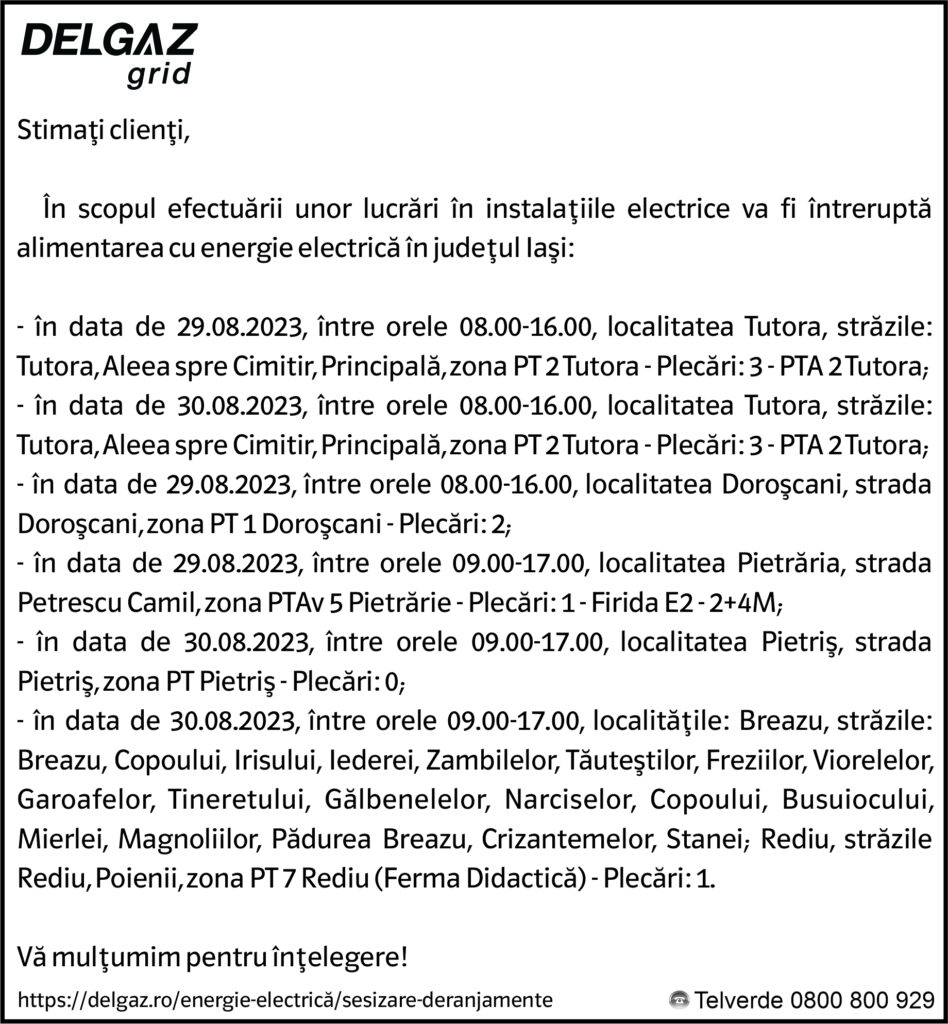 Anunțuri Delgaz gridAnunț Delgaz Grid 25 august 2023 / 1 de RedacțiaAugust 24, 2023August 24, 2023043 Share0