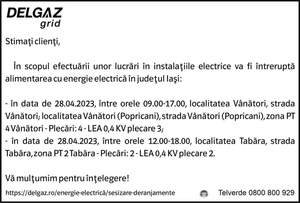 Anunțuri Delgaz gridAnunț Delgaz Grid 26 aprilie 2023 de RedacțiaApril 25, 2023April 25, 2023051 Share0