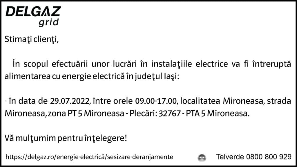 Anunț Delgaz Grid 26 iulie 2022