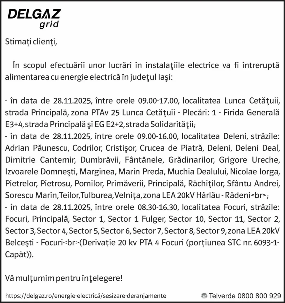 Anunțuri Delgaz gridAnunț Delgaz Grid 26 noiembrie 2025 / 1 de Răzvan GrecuNovember 25, 2025November 25, 202504 Share0
