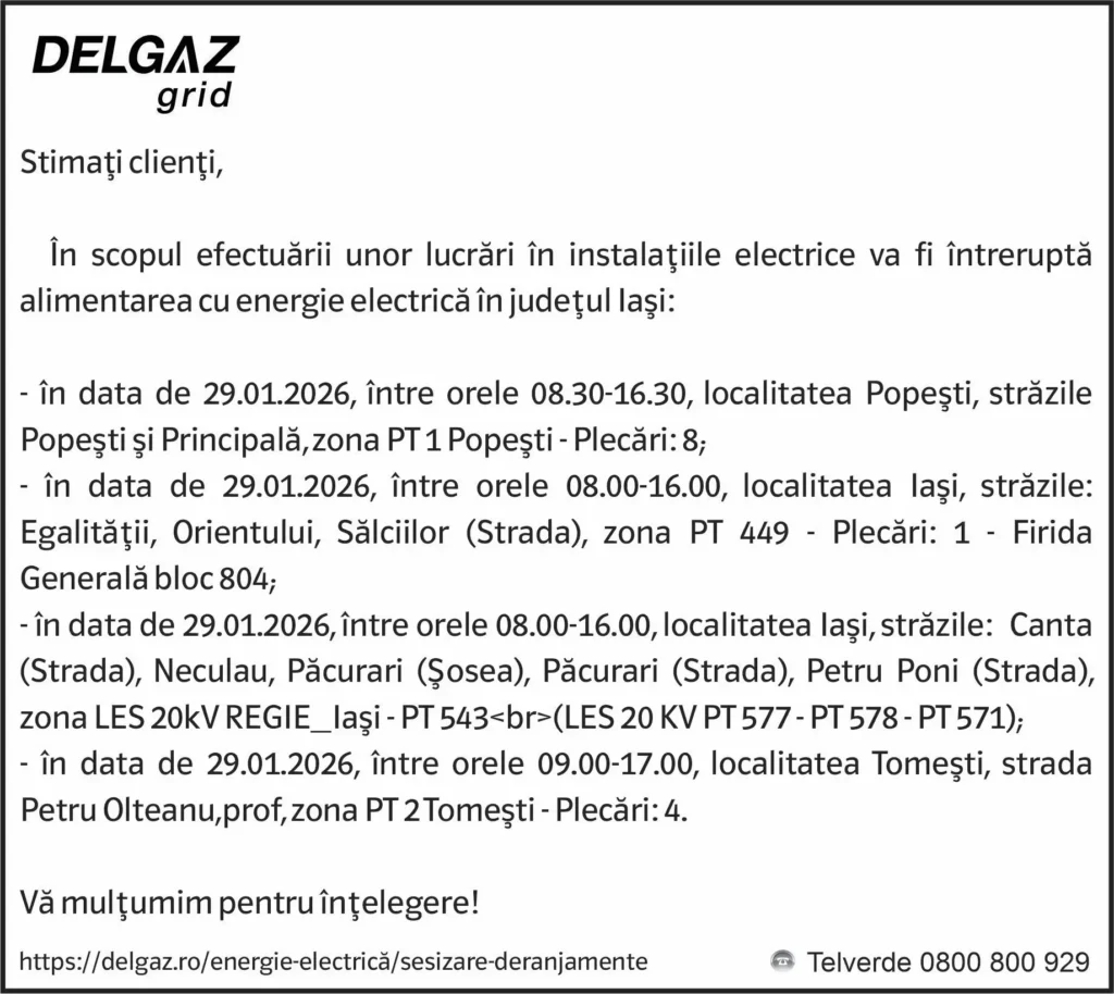 Anunțuri Delgaz gridAnunț Delgaz Grid 27 ianuarie 2026 / 1 de Răzvan GrecuJanuary 26, 2026January 26, 202602 Share0