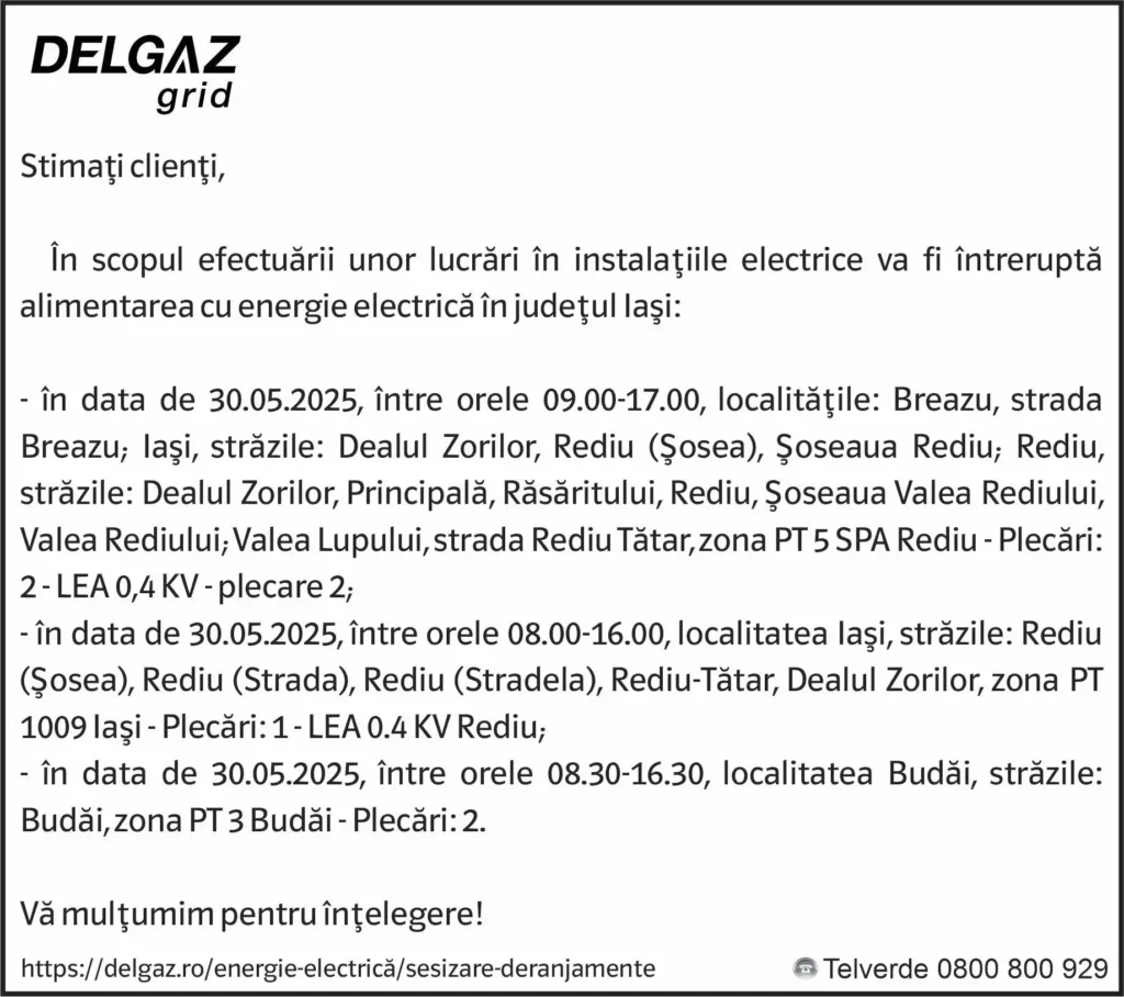 Anunț Delgaz Grid 27 mai 2025 / 1