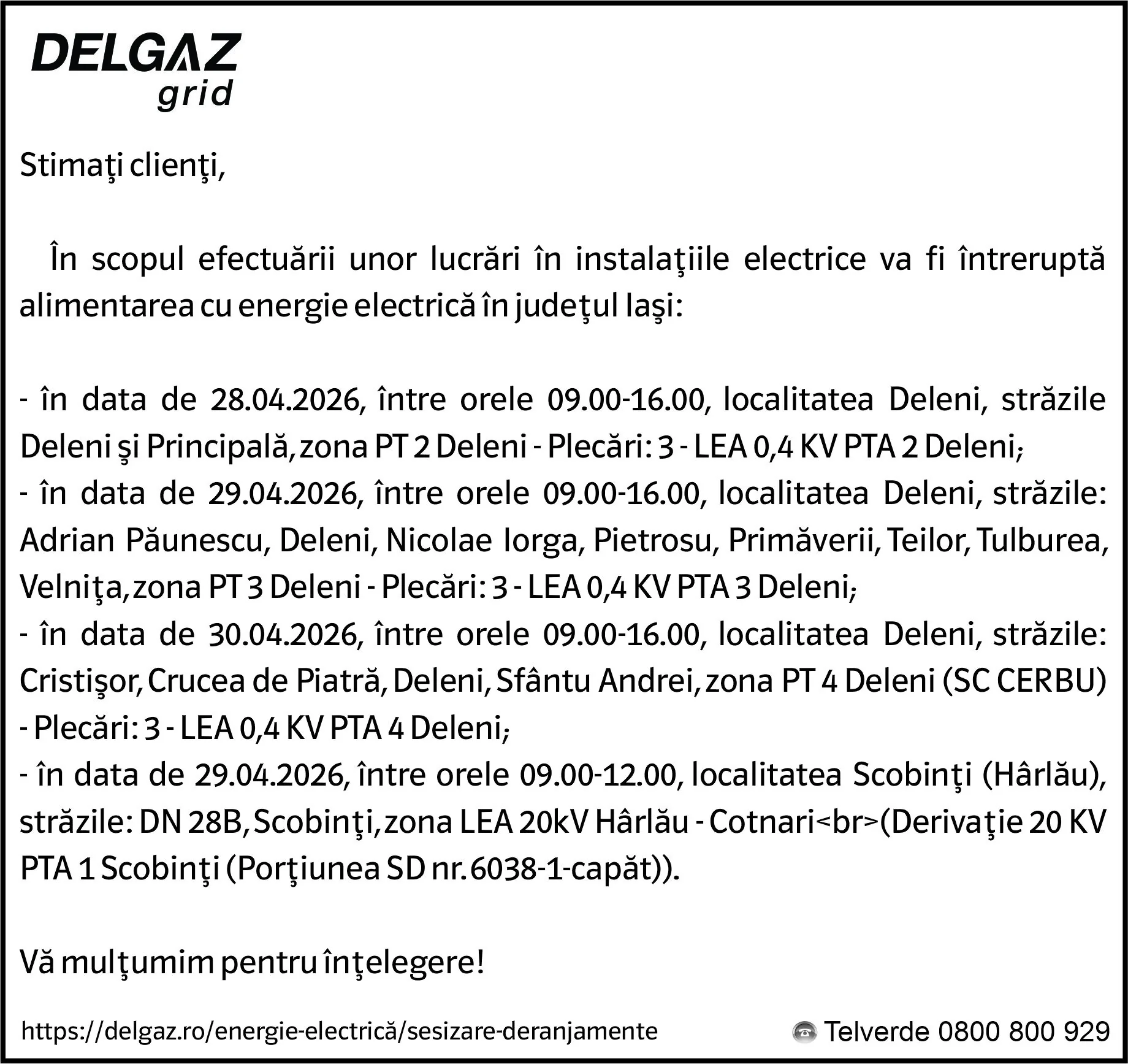 Anunț Delgaz Grid 28 aprilie 2026 / 4