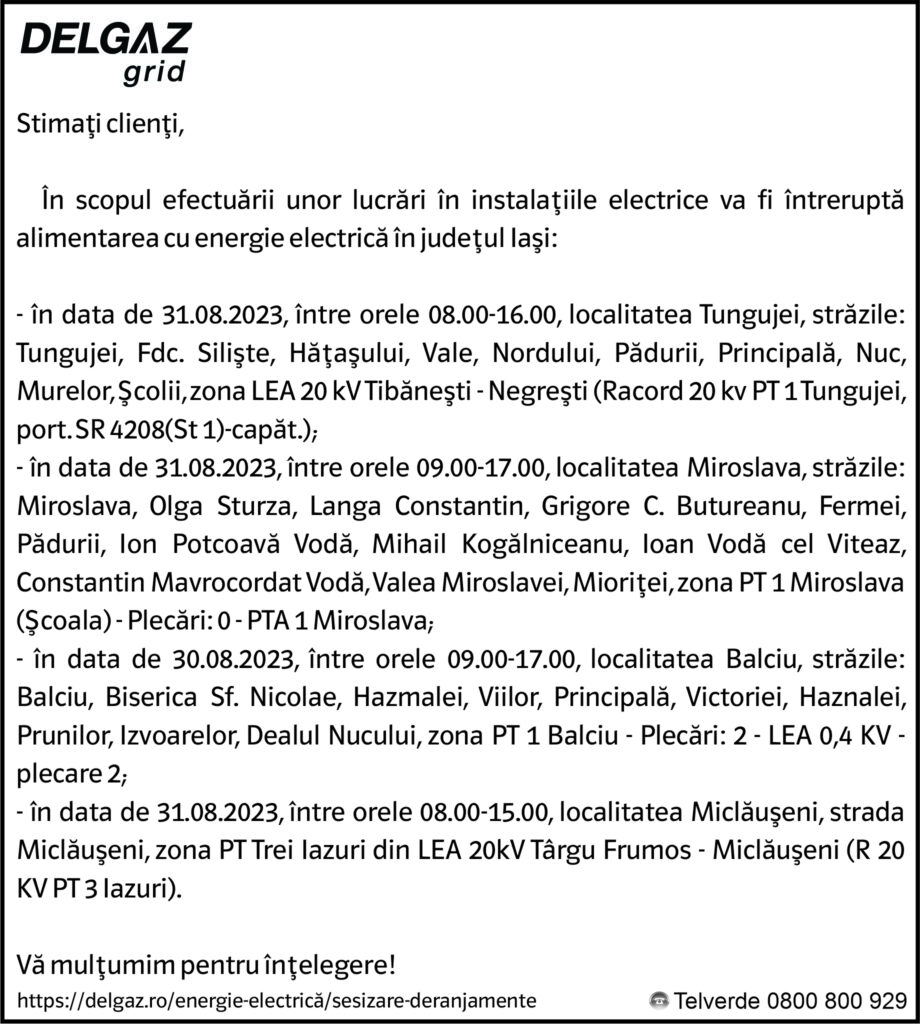 Anunțuri Delgaz gridAnunț Delgaz Grid 28 august 2023 de RedacțiaAugust 27, 2023August 27, 2023067 Share0