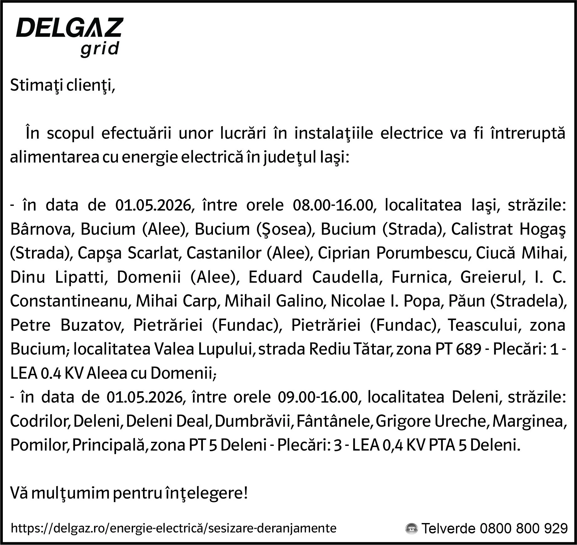 Anunțuri Delgaz grid