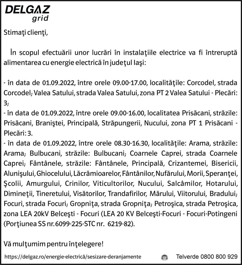 Anunțuri Delgaz gridAnunț Delgaz Grid 29 august 2022 de RedacțiaAugust 28, 2022August 28, 2022065 Share0