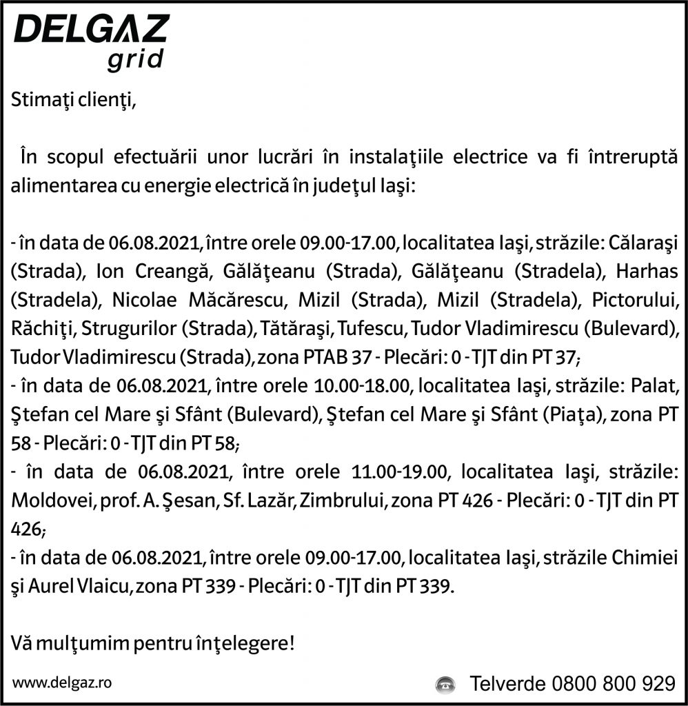 Anunțuri Delgaz gridAnunț Delgaz Grid 3 august 2021 / 1 de RedacțiaAugust 2, 2021August 2, 2021063 Share0