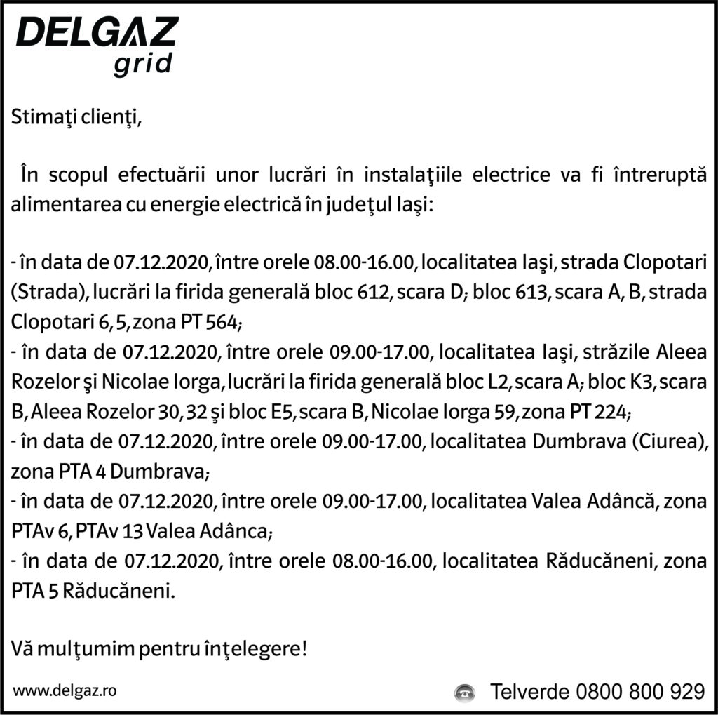 Anunțuri Delgaz gridAnunț Delgaz Grid 3 decembrie 2020 / 2 de RedacțiaDecember 2, 2020December 2, 2020021 Share0