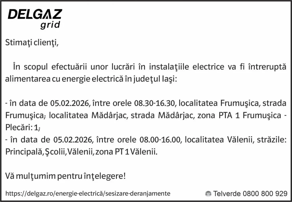 Anunțuri Delgaz gridAnunț Delgaz Grid 3 februarie 2026 de Răzvan GrecuFebruary 2, 2026February 2, 2026011 Share0