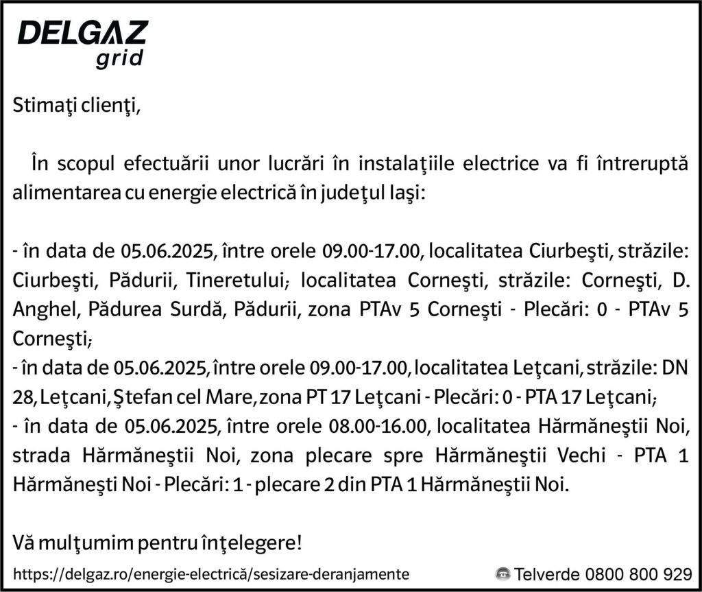 Anunț Delgaz Grid 3 iunie 2025