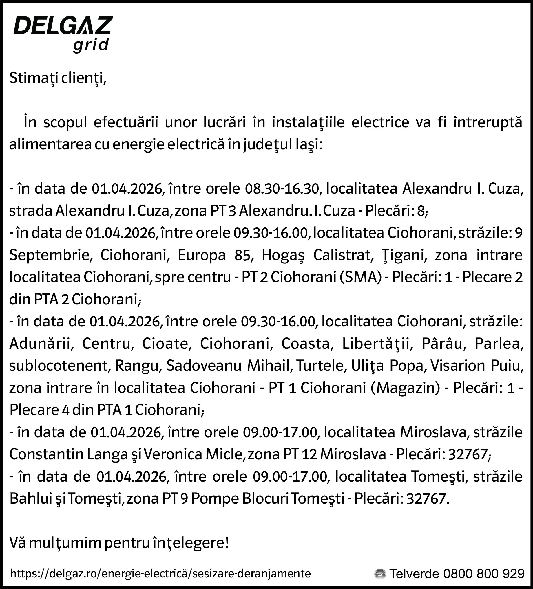 Anunț Delgaz Grid 20 ianuarie 2024 / 1