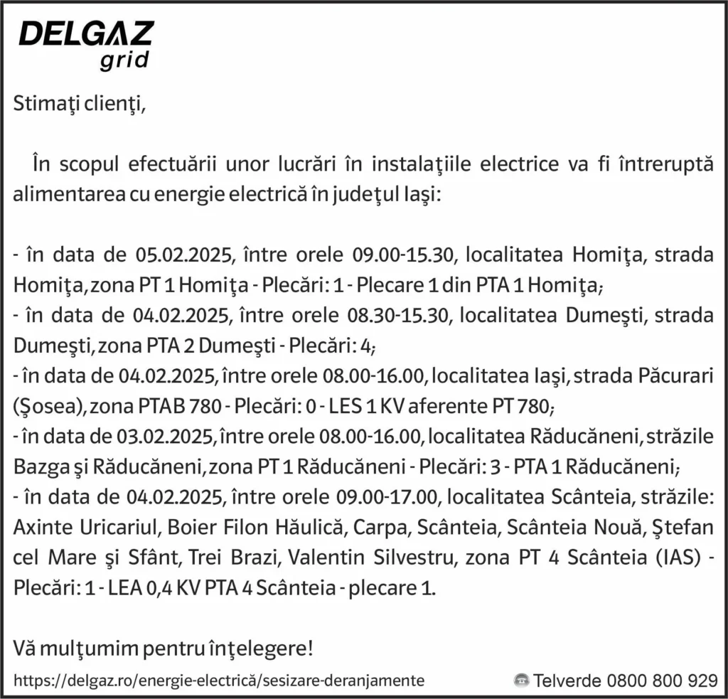Anunțuri Delgaz gridAnunț Delgaz Grid 31 ianuarie 2025 de RedacțiaJanuary 31, 2025January 31, 2025032 Share0