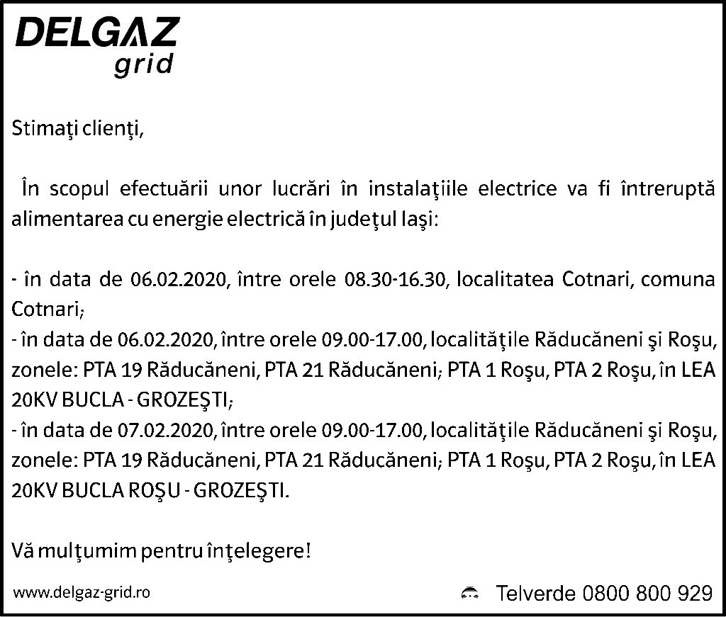 Anunțuri Delgaz gridAnunț Delgaz Grid 4 februarie 2020 / 3 de RedacțiaFebruary 3, 2020February 3, 20200130 Share0