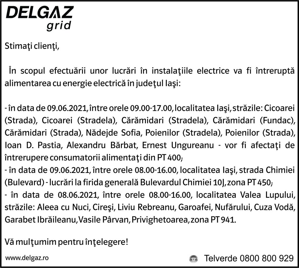 Anunț Delgaz Grid 4 iunie 2021 / 3
