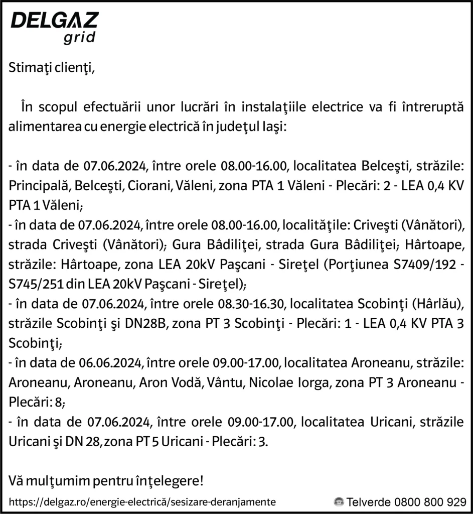 Anunț Delgaz Grid 4 iunie 2024 / 2