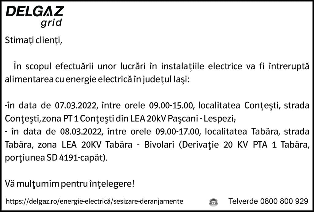Anunțuri Delgaz gridAnunț Delgaz Grid 4 Martie 2022 / 3 de Acălugăriței DragosMarch 4, 2022March 4, 2022025 Share0
