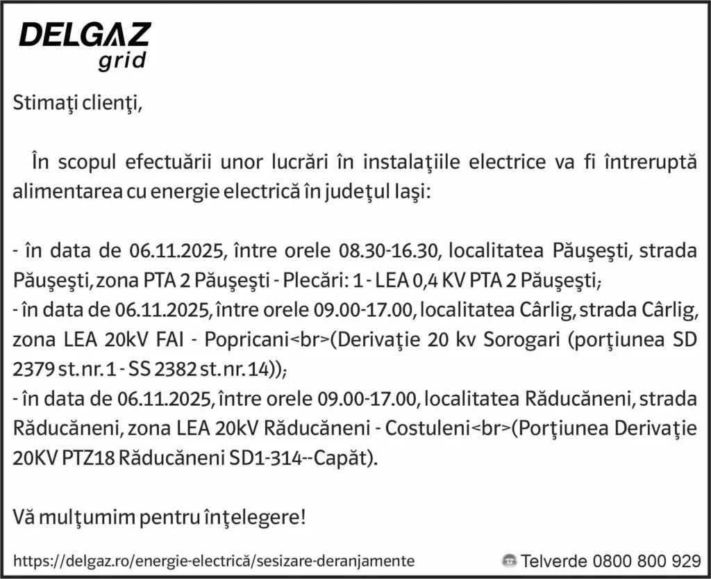 Anunțuri Delgaz gridAnunț Delgaz Grid 4 noiembrie 2025 / 2 de Răzvan GrecuNovember 3, 2025November 3, 202504 Share0