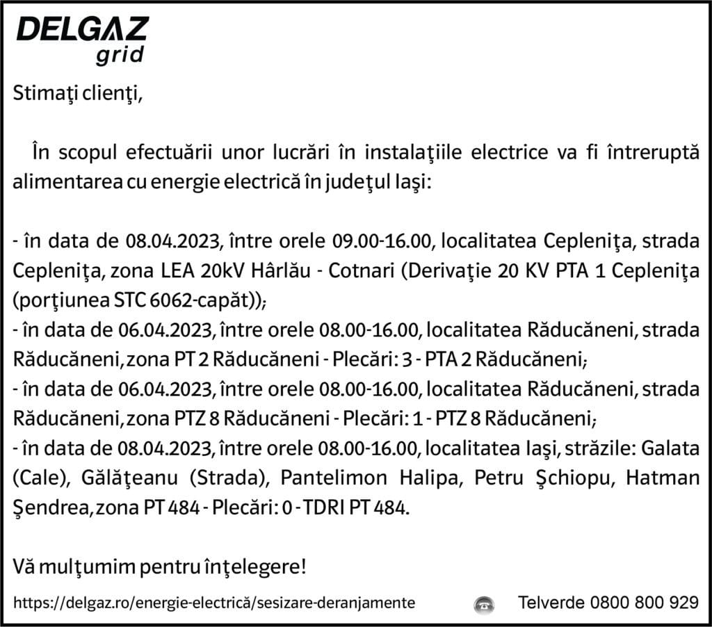 Anunțuri Delgaz gridAnunț Delgaz Grid 5 aprilie 2023 de RedacțiaApril 4, 2023April 4, 20230100 Share0