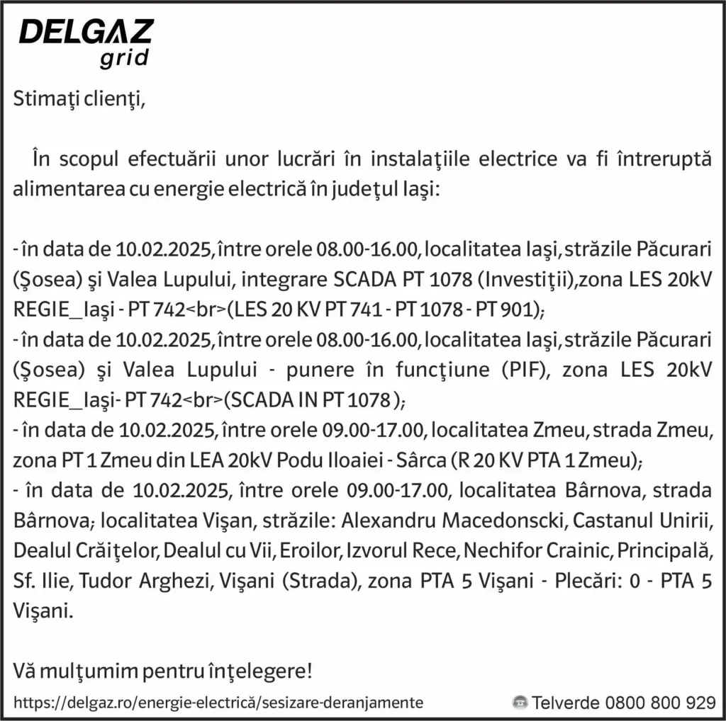 Anunțuri Delgaz gridAnunț Delgaz Grid 6 februarie 2025 / 1 de RedacțiaFebruary 5, 2025February 5, 2025026 Share0