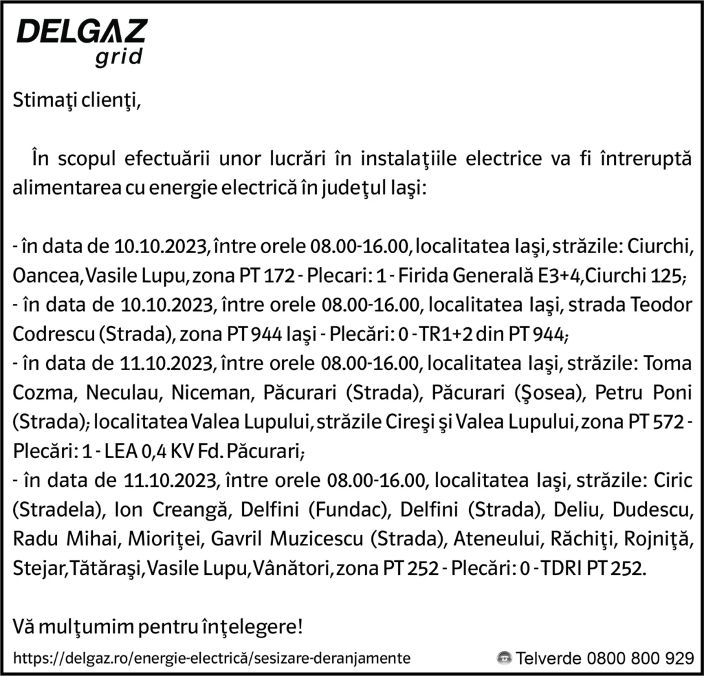 Anunțuri Delgaz gridAnunț Delgaz Grid 6 octombrie 2023 / 3 de RedacțiaOctober 5, 2023October 5, 2023072 Share0