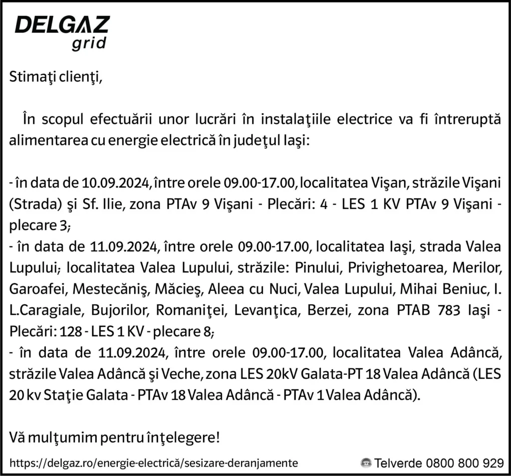Anunțuri Delgaz gridAnunț Delgaz Grid 6 septembrie 2024/ 2 de RedacțiaSeptember 5, 2024September 5, 2024029 Share0