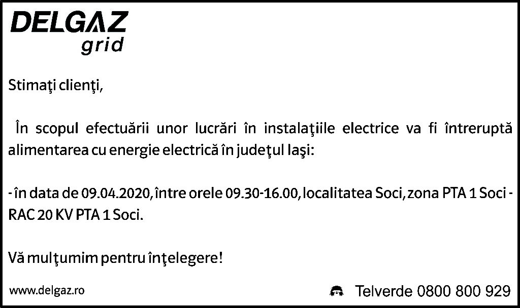 Anunțuri Delgaz gridAnunț Delgaz Grid 7 aprilie 2020 / 2 de RedacțiaApril 7, 2020April 7, 20200117 Share0