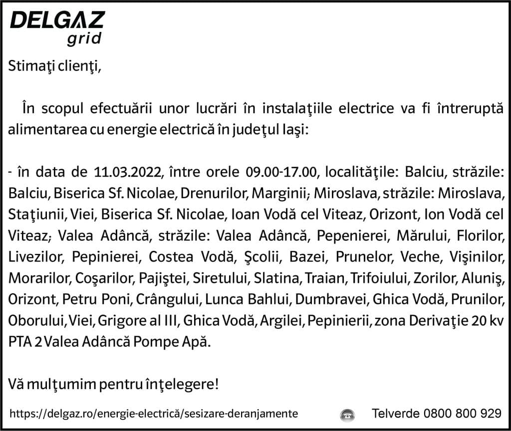 Anunțuri Delgaz gridAnunț Delgaz Grid 9 martie 2022 / 1 de RedacțiaMarch 8, 2022March 8, 2022037 Share0
