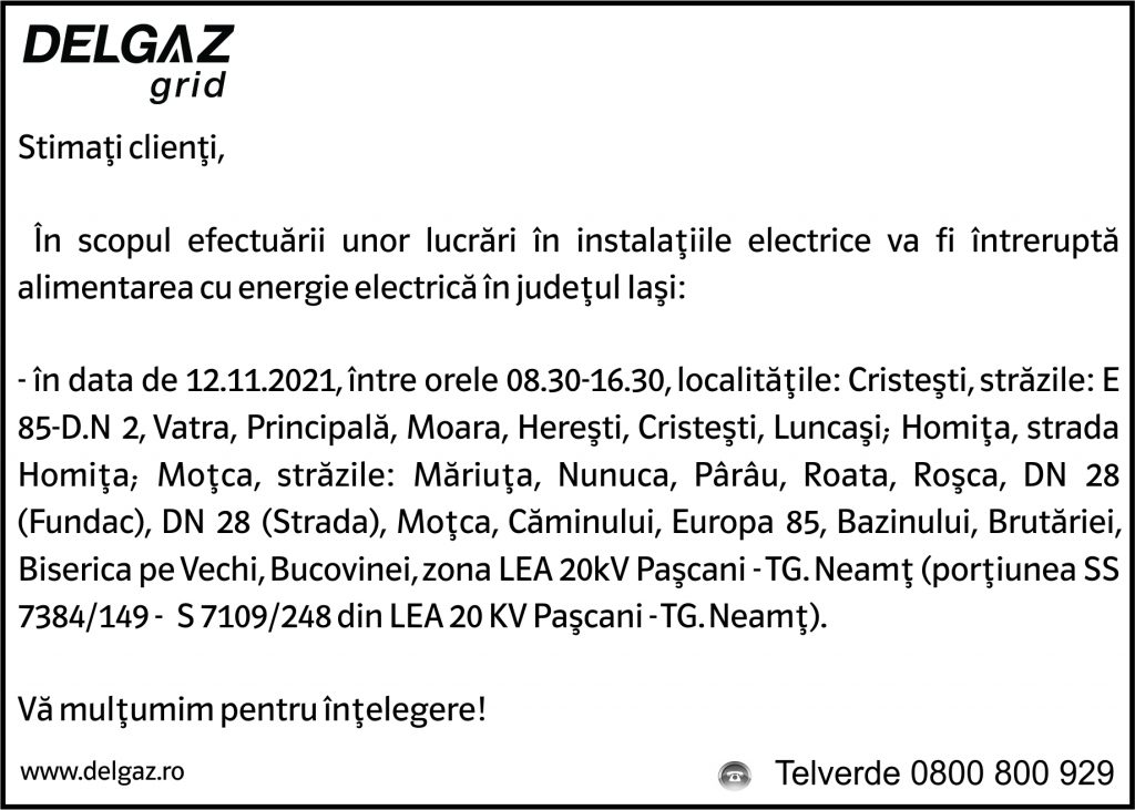 Anunțuri Delgaz gridAnunț Delgaz Grid 9 noiembrie 2021 / 3 de RedacțiaNovember 8, 2021November 8, 2021044 Share0
