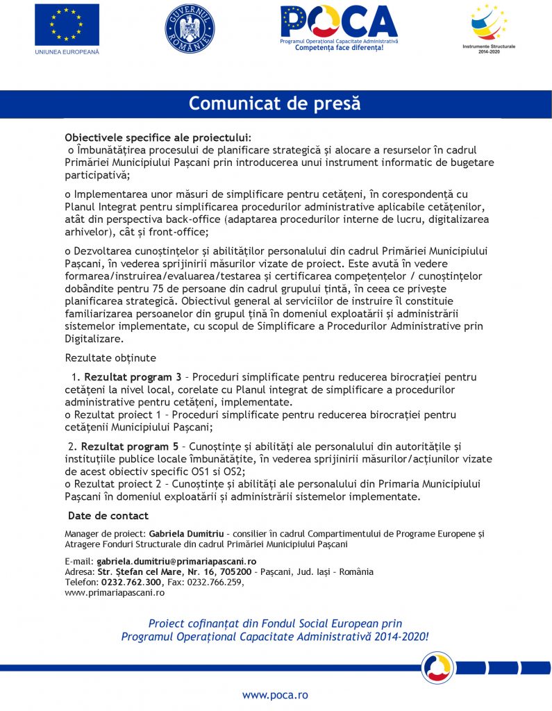 Paşcani, în vederea sprijinirii măsurilor vizate de proiect. Este avută în vedere