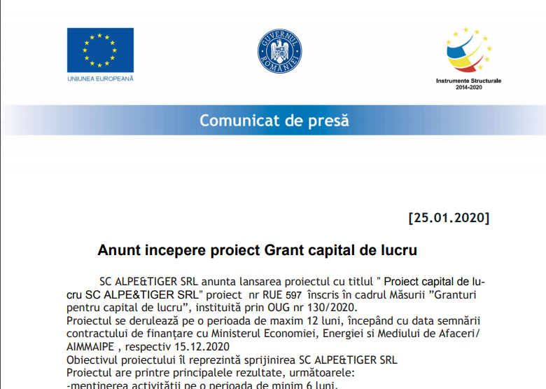 Comunicate de PresăAnunț începere proiect Grant capital de lucru de RedacțiaJanuary 25, 2021January 26, 20210170 Share0 click DOCUMENT