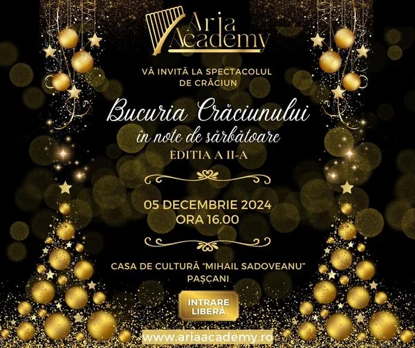 Aria Academy îi invită pe toți pașcănenii să trăiască magia sărbătorilor de iarnă la spectacolul „Bucuria Crăciunului în note de sărbătoare”, ediția a II-a. Evenimentul va avea loc pe 5 decembrie 2024, începând cu ora 16:00, la Casa de Cultură „Mihail Sadoveanu” din Pașcani.