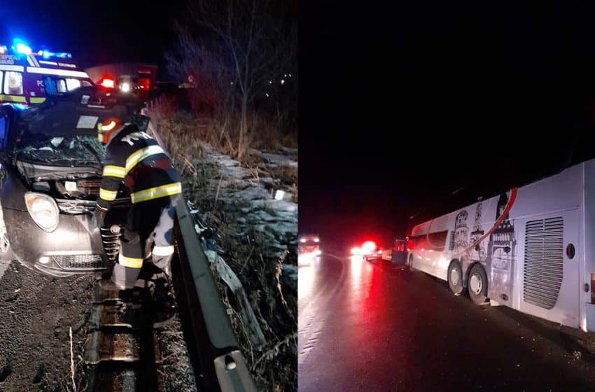 Sursa citată a precizat că autocarul, care se deplasa pe ruta Iaşi – Lyon (Franţa), avea 60 de persoane la bord, iar avariile suferite nu i-au permis să-şi continue drumul.