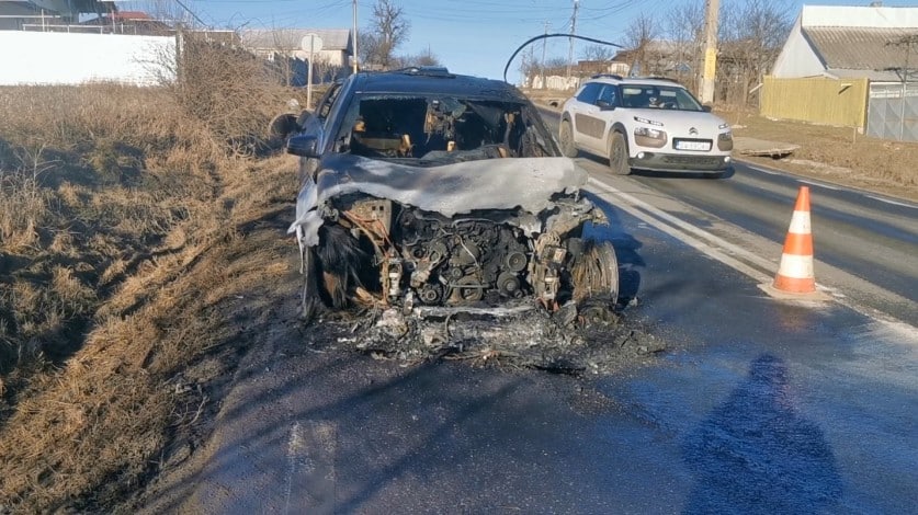 Un echipaj de intervenție din cadrul Secției de Pompieri Pașcani a intervenit în această dimineață în localitatea Gâștești, pentru stingerea unui incendiu produs la un autoturism. Nu au fost victime. Mașina, marca Mercedes, a ars aproape în totalitate.
