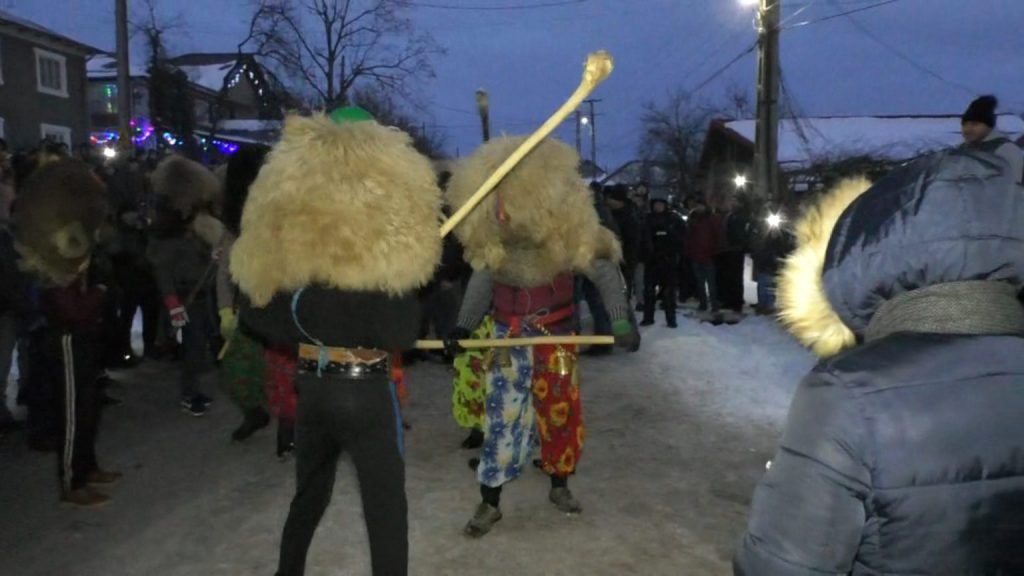 În dimineaţa ultimei zile din an, înainte de a se lumina de ziuă, tinerii de pe deal şi cei din vale se adună, se îmbracă şi îşi pun măşti hidoase confecţionate manual, se înarmează cu ciomege şi îşi dispută supremaţia în sat bătându-se sub privirile spectatorilor.