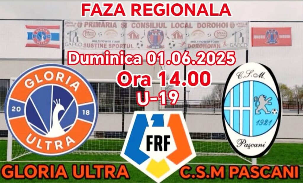 Sportivii CSM Pașcani U 19, pregătiți de Cătălin Damian, se vor deplasa la Dorohoi, la baza “1 Mai”. Ei vor evolua contra formației Gloria Ultra, campioana județului Botoșani. Partida va începe de la ora 14.00.