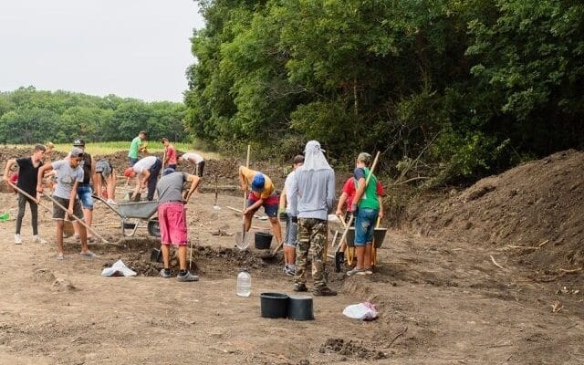 La săpăturile făcute la cca 1,5 km de satul Dobrovăț au dat o mână de ajutor și tineri localnici.