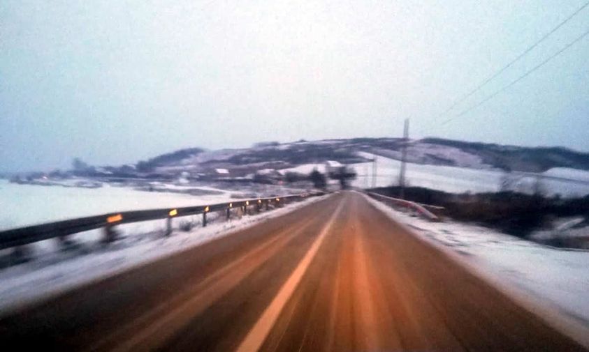 În această dimineață, în Moldova carosabilul este umed cu porțiuni cu zăpadă frământată la acostament de cca. 0 – 1 cm, mai cu seamă în jud. Suceava (SDN Campulung Moldovenesc și Botosani). Ninge în in jud. Suceava, Iași, Bacău(Tg. Ocna), Neamț, Botoșani, Vaslui, cerul este acoperit și mai degajat în sud (jud. Vrancea), iar în jud. Suceava avem intensificări de vânt cu viteze între 10 – 20 km/h, din NV.