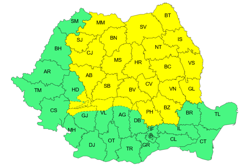 Administrația Națională de Meteorologie (ANM) a emis o avertizare Cod Galben de instabilitate atmosferică temporar accentuată, valabilă marți, 16 iulie, în intervalul orar 10:00 – 22:00.