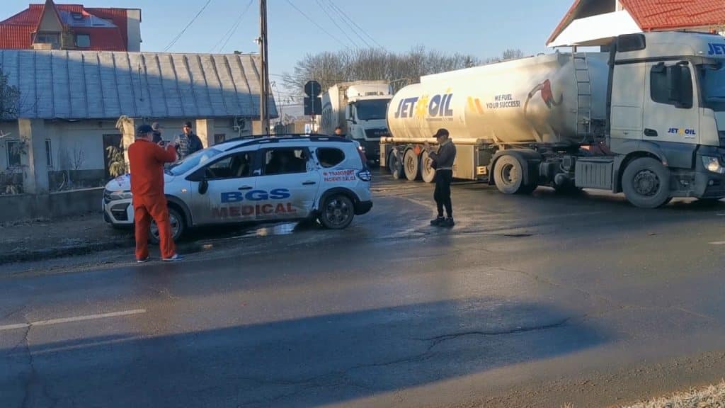 Acesta nu a reușit să se încadreze, a dat cu spatele probabil fără să se asigure, iar în acest timp un șofer de pe o ambulanță care transportă pacienți dializați a forțat trecerea, iar autoturismul a fost avariat. În mașină, pe lângă șofer se mai aflau două persoane, pe bancheta din spate. În urma impactului, ambulanța a fost avariată pe partea stângă, nu au existat victime.