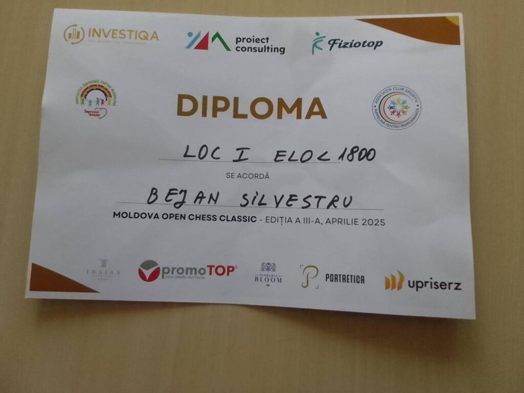 Cel mai bun rezultat l-a obținut Bejan Silvestru, care, cu 4 puncte din 6 posibile, a reușit să se claseze pe locul I la categoria 1601-1800. Performanța sa confirmă parcursul ascendent și implicarea susținută în competiții.