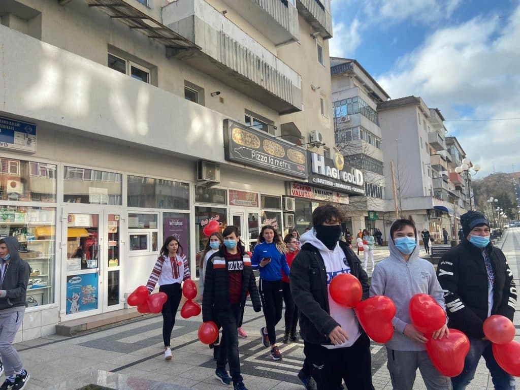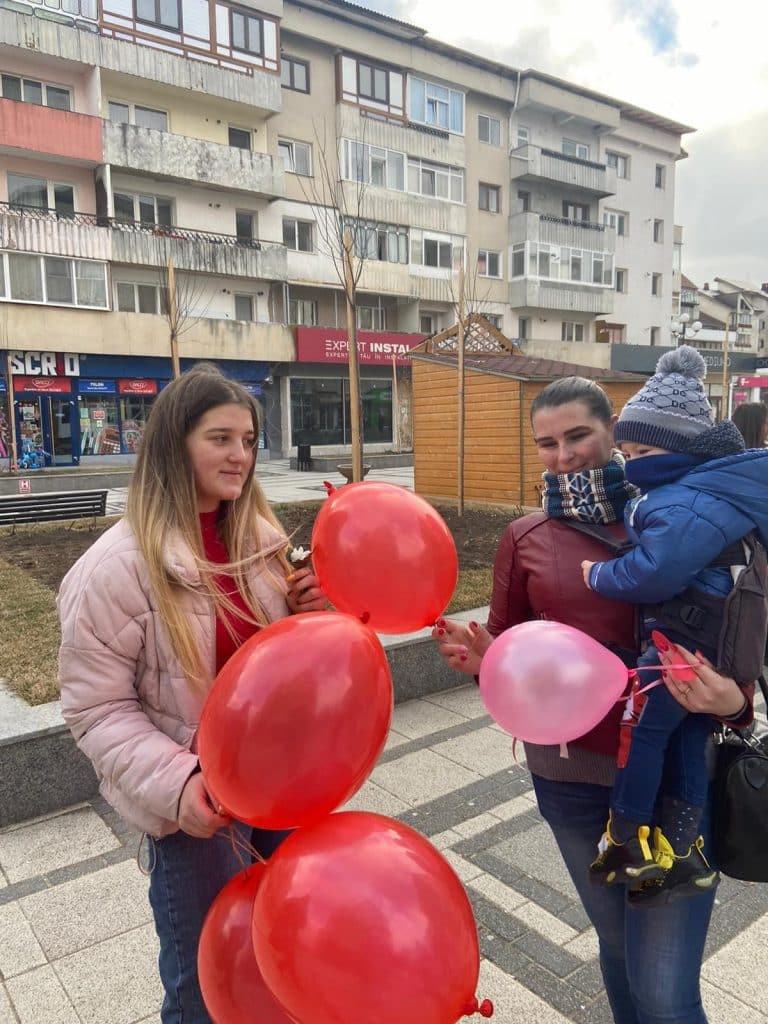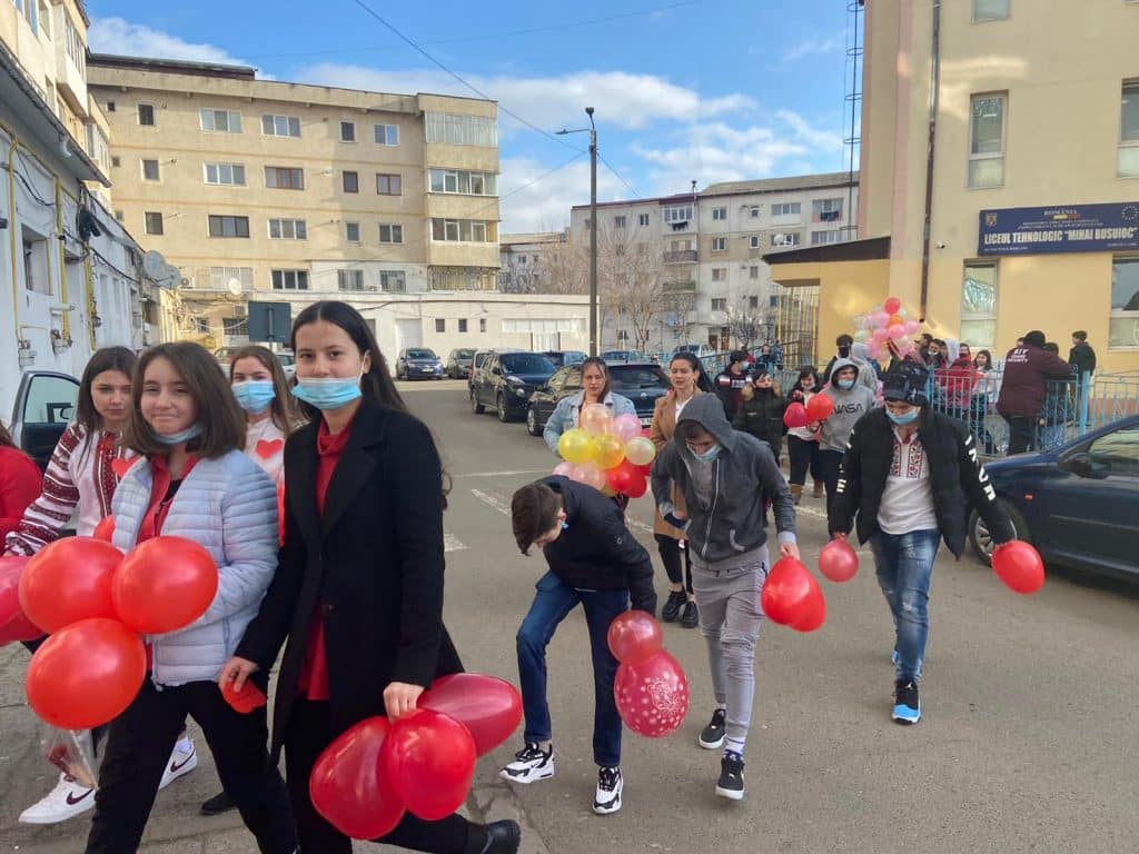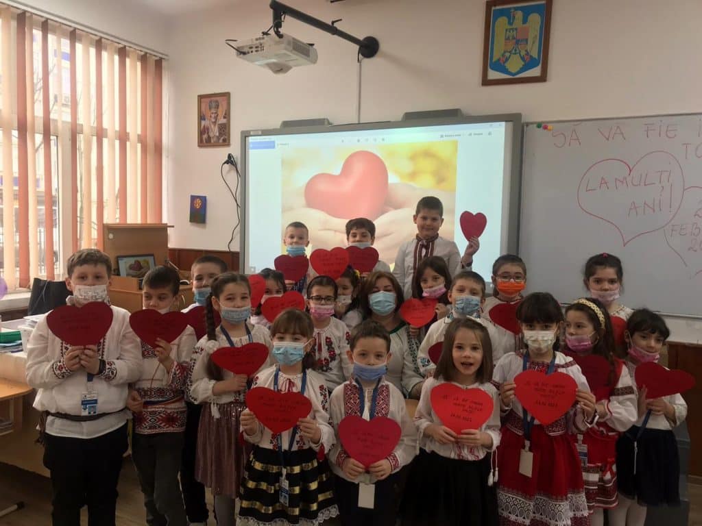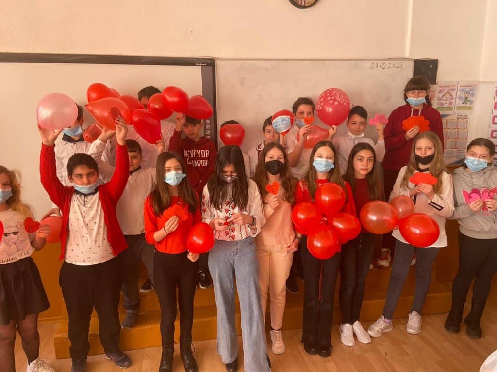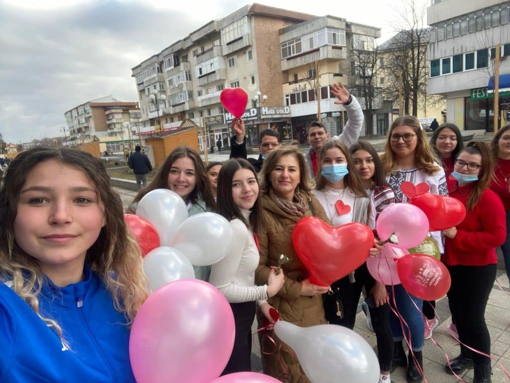 Astăzi, în ziua în care sărbătorim iubirea, elevii școlii au fost iubire, prețuire, dăruire și au demonstrat că un mic gest, făcut din inimă de copil, poate aduce o mare bucurie în sufletele adulților. Aceștia au împărțit baloane roșii, ghiocei și inimioare confecționate de ei pe care au scris mesaje emoționante”.