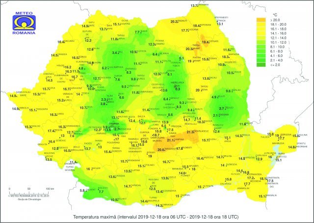 O altă curiozitate o reprezintă diferenţele de temperatură destul de mari pentru locuri relativ apropiate – cum sunt municipiul Iaşi şi zona Cotnari, unde zilele trecute s-au înregistrat 11, respectiv 19 grade. Ea se explică prin încălzirea mai tare a aerului la o anumită altitudine decât la nivelul solurilor joase. De altfel, hărţile de temperaturi ale Administraţiei Naţionale de Meteorologie arată că cel mai cald a fost până acum în regiunile submontane, extracarpatice. Aerul care coboară pe flancul Carpaţilor conduce la o încălzire punctuală, rezultând temperaturi care, la începutul săptămânii, au depăşit 20 de grade la Rădăuţi, Tg. Neamţ şi Tg. Ocna, dar şi în sud, la Târgovişte şi Câmpina. Diferenţele de temperatură pot să fie normale, dar anormal e faptul că ele se înregistrează la valori foarte mari pentru aceste zile de sfârşit de an, a subliniat Lucian Sfîcă.