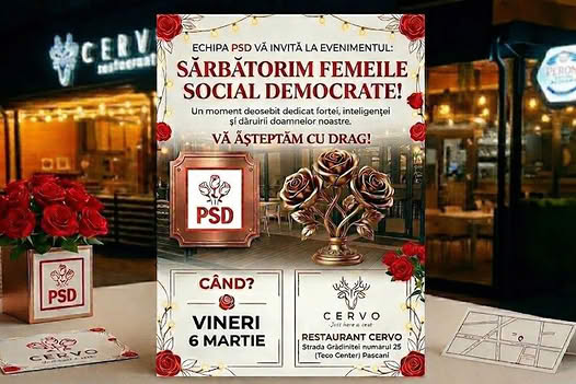 ”Împreună pentru comunitate! Ziua de 8 Martie va fi marcată și în acest an de echipa PSD Pascani printr-o serie de evenimente dedicate doamnelor și domnișoarelor din comunitate. Vineri, 6 martie, începând cu ora 18:30, vă invităm la evenimentul.„Sărbătorim Femeile Social Democrate” – un moment deosebit dedicat forței, inteligenței și dăruirii doamnelor noastre.Evenimentul va avea loc la Restaurant Cervo Duminică, 8 Martie, vom fi prezenți în mijlocul comunității pentru a oferi flori tuturor doamnelor pe care le vom întâlni pe stradă, în semn de apreciere și respect.O primăvară frumoasă tuturor! ”, este mesajul transmis de PSD Pașcani.