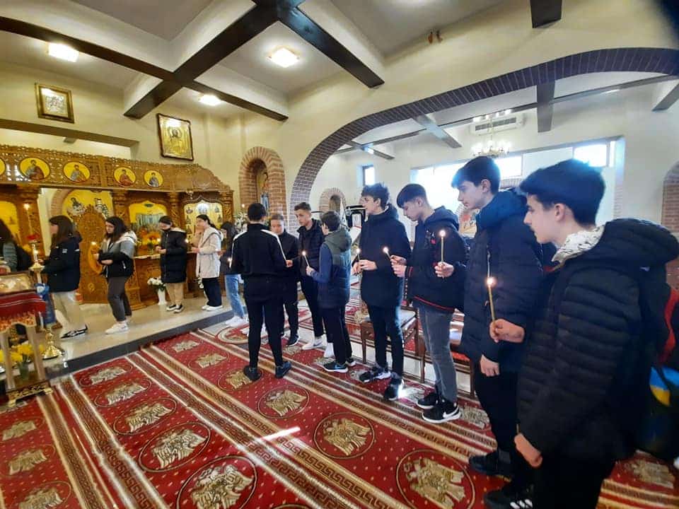 „În cadrul parteneriatului Școală – Biserică, elevi de la Colegiul Național ” M.Sadoveanu”- Pașcani, au primit Sf. Taine: a Spovedaniei și a Împărtășanie. Pe tot parcursul activității, elevii au dat dovadă de valori moral religioase autentice. Mulțumim pr. Pavel Postolachi pentru cuvintele frumoase de învățătură despre rolul rugăciunii în viața tinerilor!